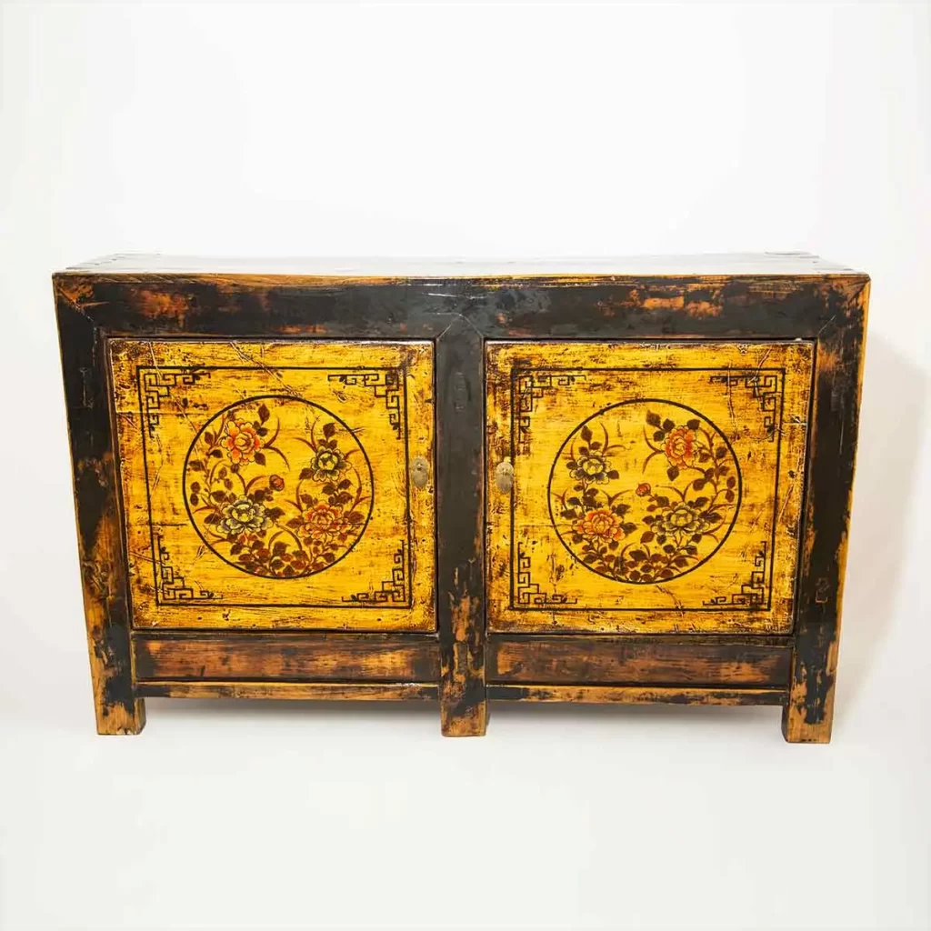 Ancient Chinese furniture with delicate floral decoration, from Mongolia. Early 1900s. Conservative restoration.