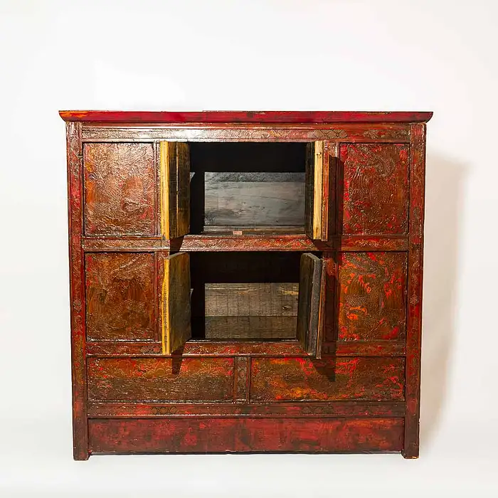 Tibetan monastic furniture with polychrome decorations. From Tibet in the early 1900s.